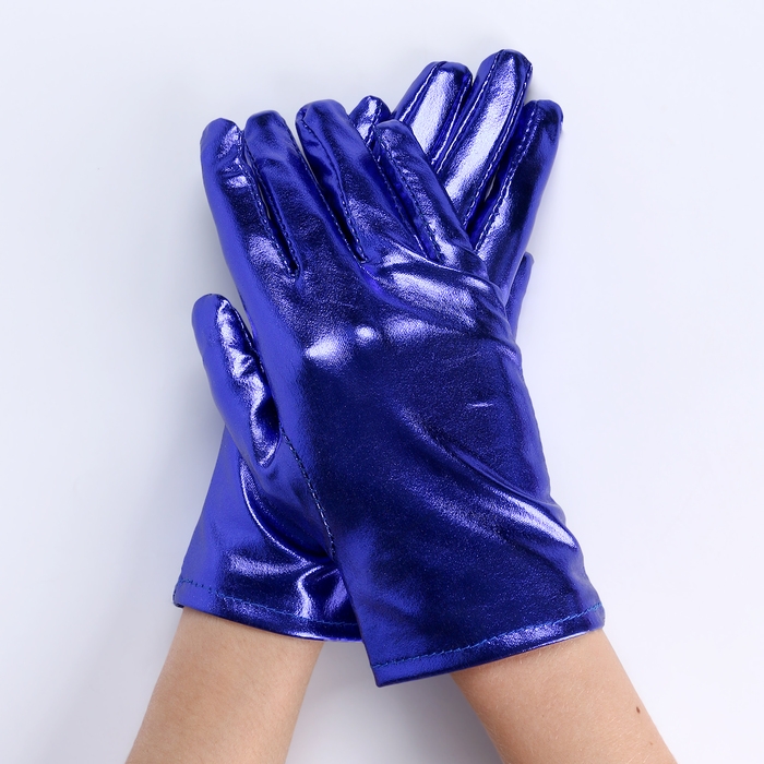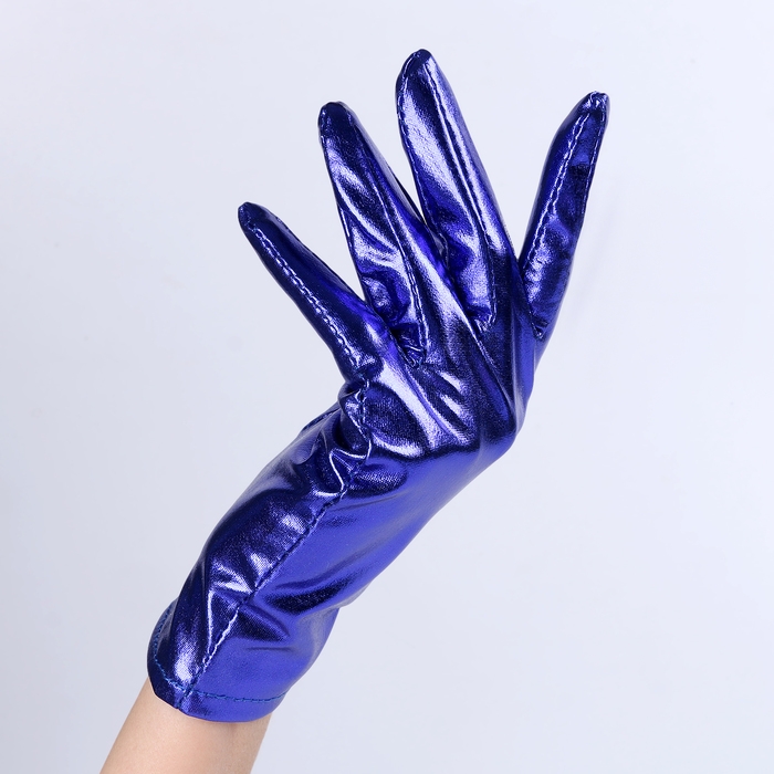 Перчатки женские, цвет синий, металлик, искусственная кожа