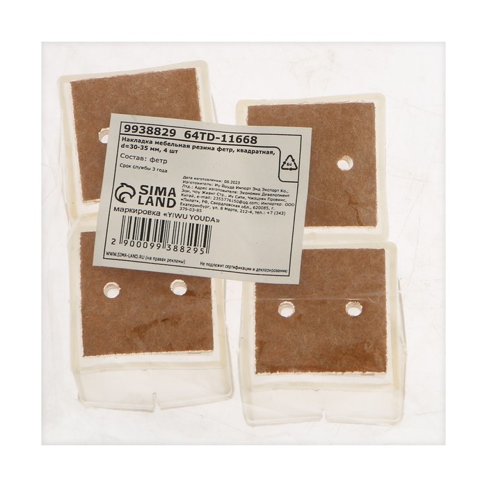 Накладка мебельная резина фетр, квадратная, d=30-35 мм, 4 шт