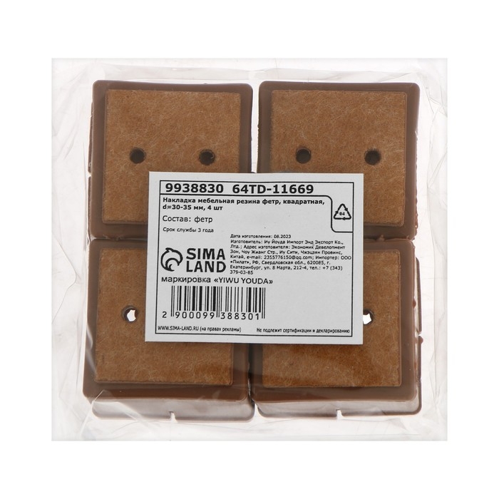 Накладка мебельная резина фетр, квадратная, d=30-35 мм, 4 шт