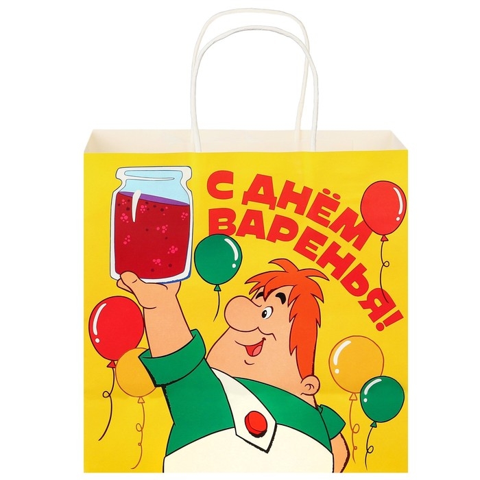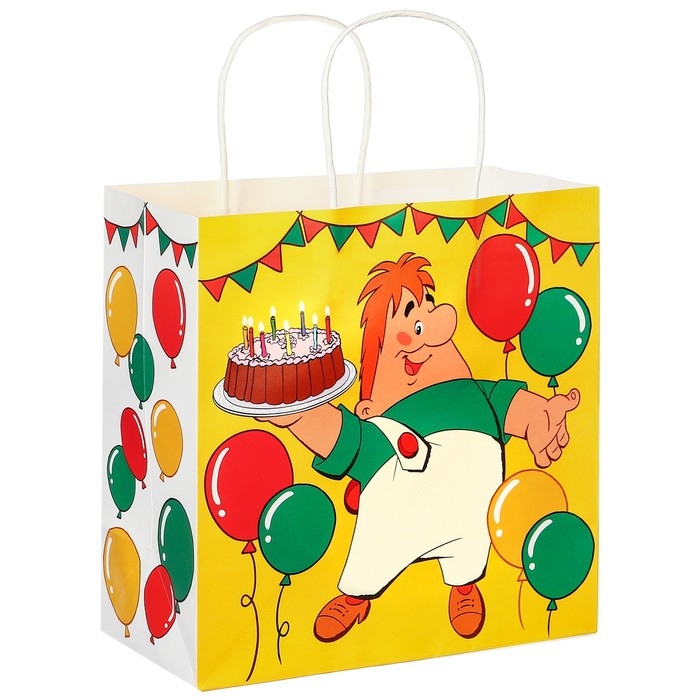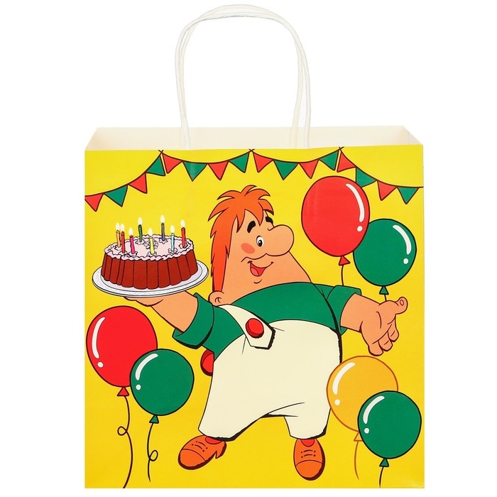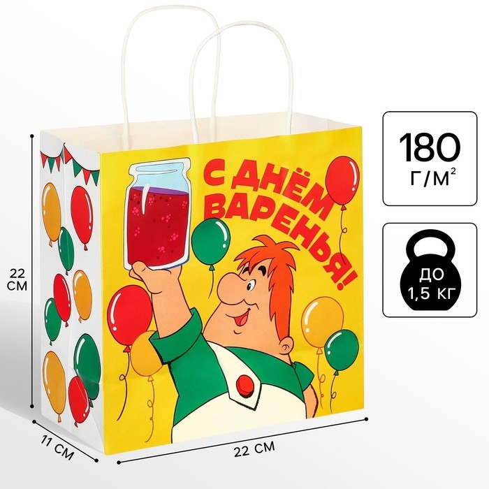 Пакет подарочный "С Днём Варенья!" 22х22х11 см, крафт, упаковка, Малыш и Карлсон