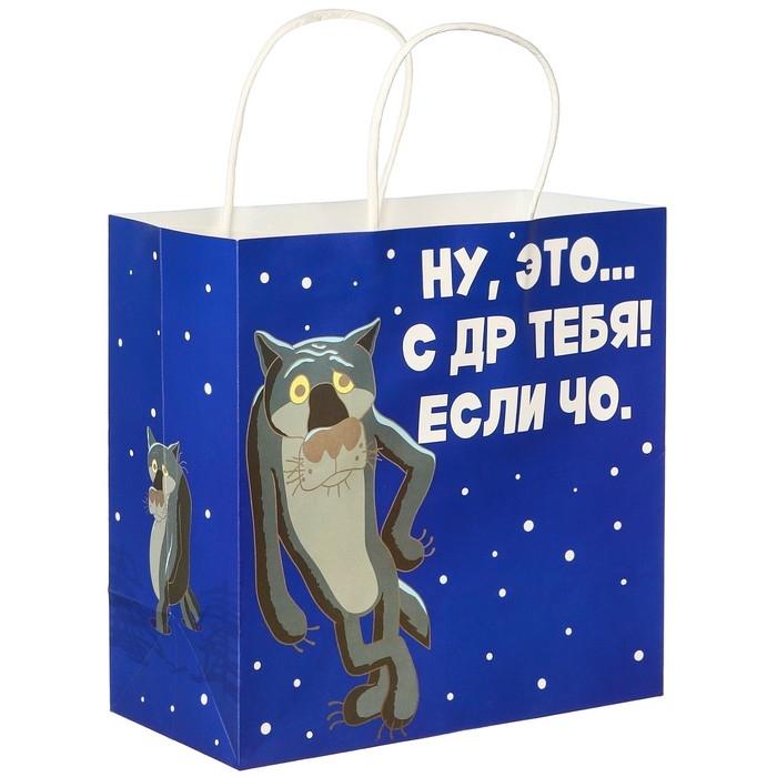 Пакет подарочный "С Др тебя если чо" 22х22х11 см, крафт, упаковка, Жил-был Пес