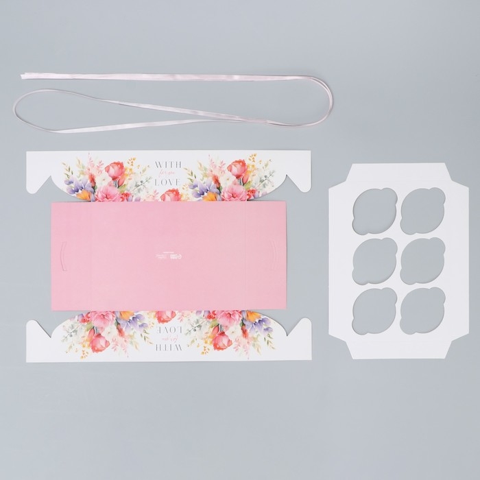 Коробка для капкейка, кондитерская упаковка, 6 ячеек «С теплом и любовью», 23 х 16 х 7.5 см