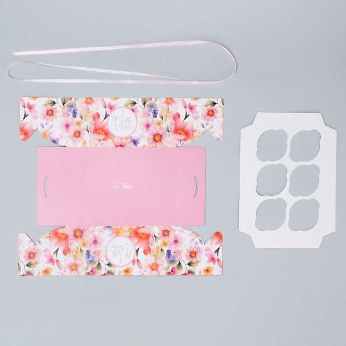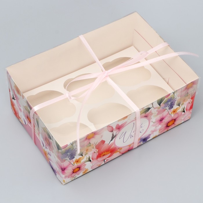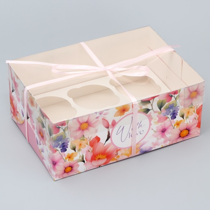 Коробка для капкейка, кондитерская упаковка, 6 ячеек «Нежность» 23 х 16 х 10 см