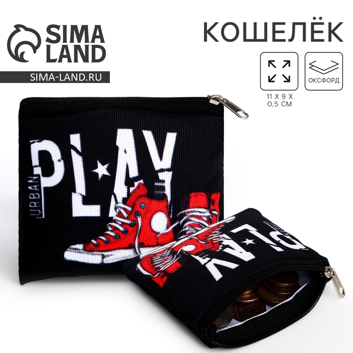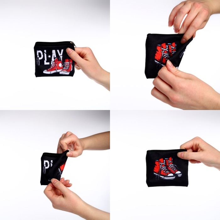 Кошелек детский текстильный "Кеды", 11х9х0,5 см, цвет черный