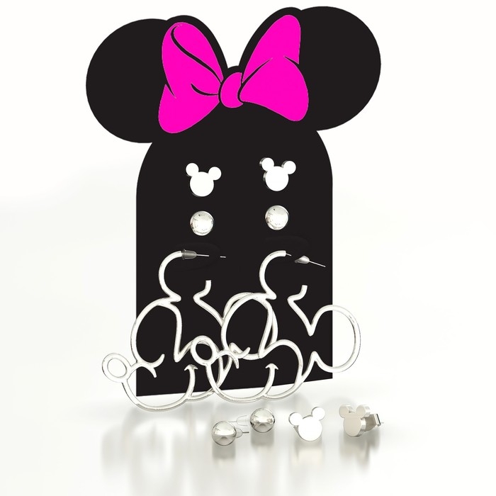 Серьги из металла, 3 пары, бижутерия, Минни Маус