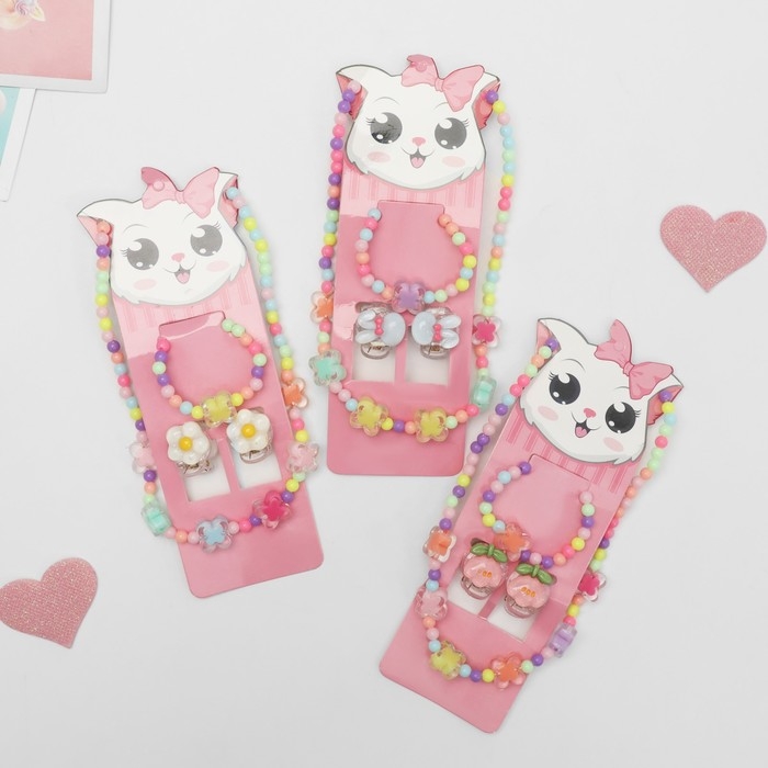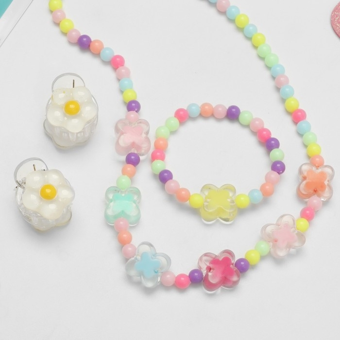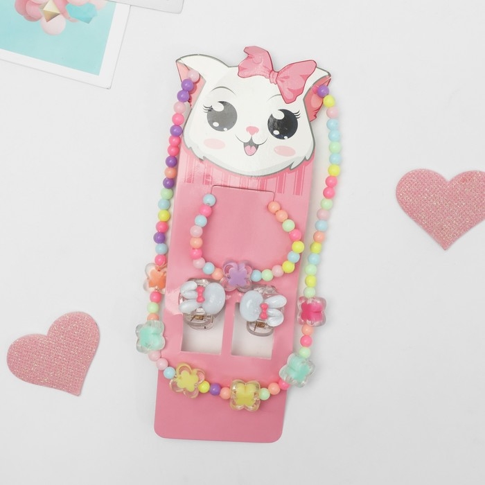 Комплект детский «Выбражулька» 4 предмета: 2 заколки, бусы, браслет, бабочки, цветной