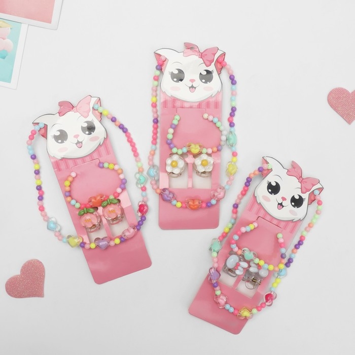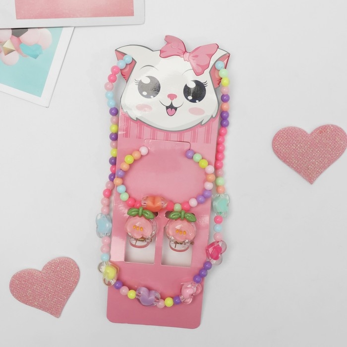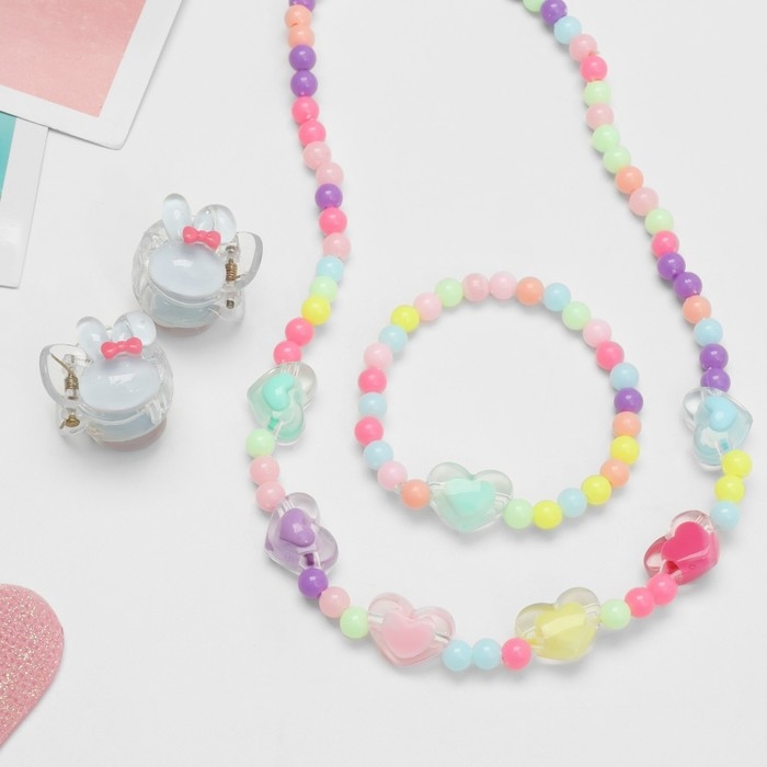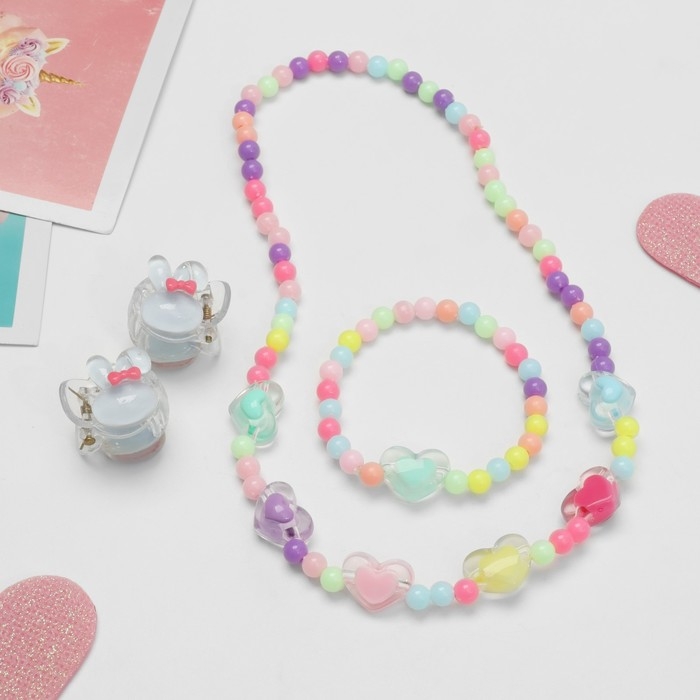 Комплект детский «Выбражулька» 4 предмета: 2 заколки, бусы, браслет, сердечки, цветной