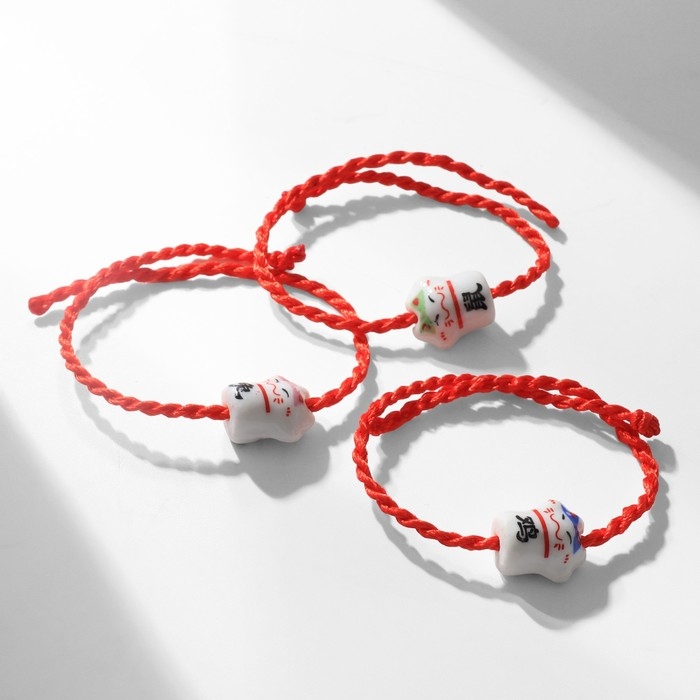 Браслет «Кот» нэко, цвет бело-красный, кошка МИКС