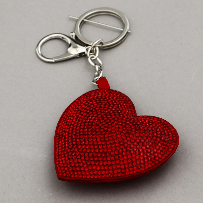 Мягкая игрушка «Сердце» со стразами, на брелоке, 7 см, цвет красный
