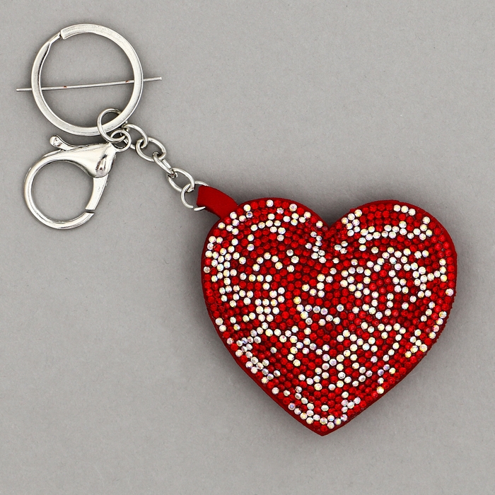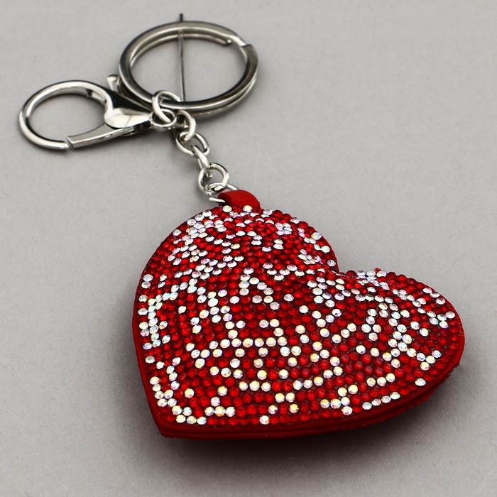 Мягкая игрушка «Блестящее сердце», на брелоке, 7 см, цвет красный