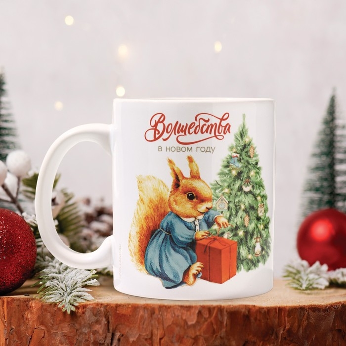 Кружка новогодняя керамическая «Белочка», 320 мл, цвет белый
