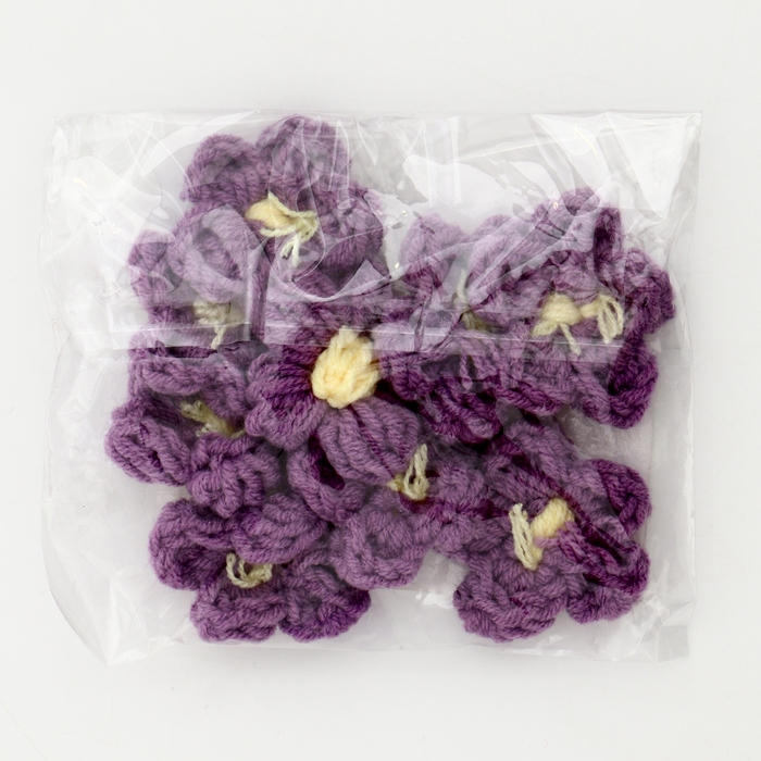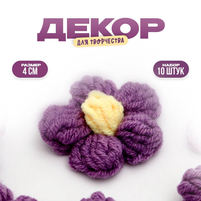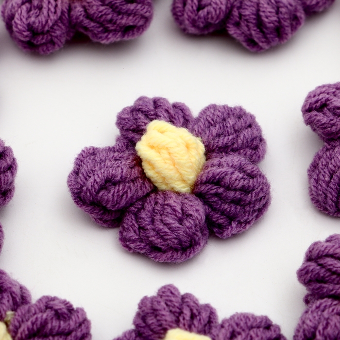 Цветок вязаный, набор 10 шт., размер 1 шт., 4 × 1,5 см, цвет фиолетовый