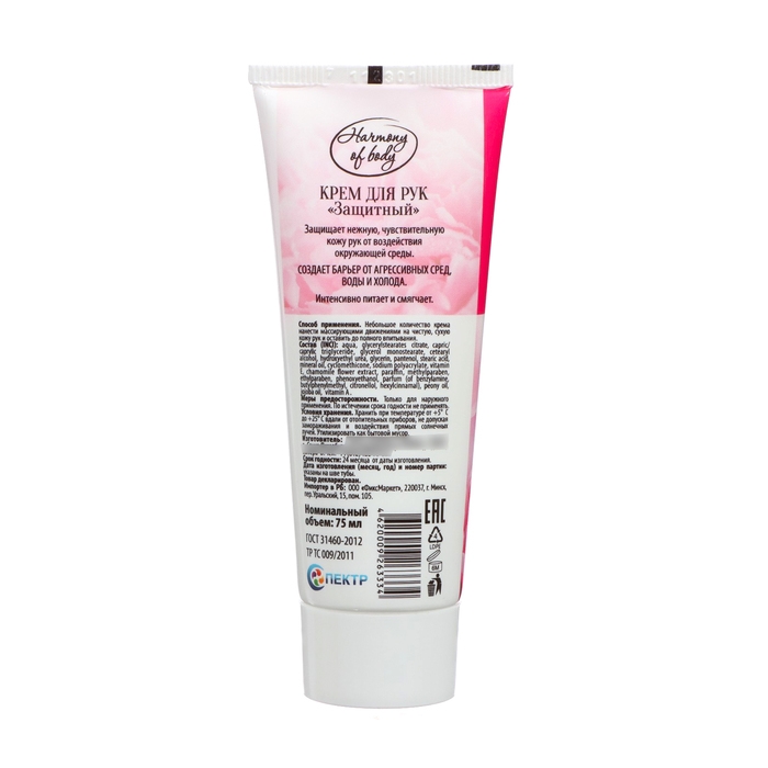 Крем для рук защитный Harmony of body с маслом пиона и маслом жожоба, 75 мл