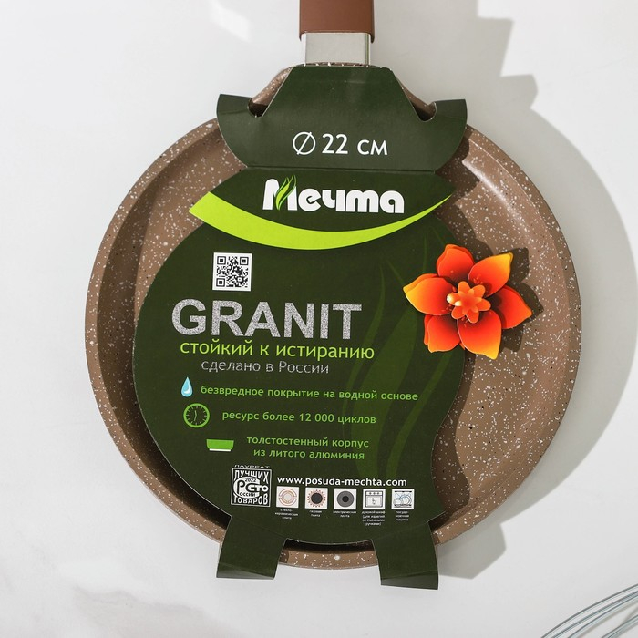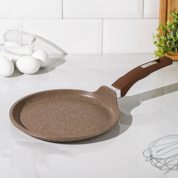 Сковорода блинная «Гранит Brown», d=22 см, пластиковая ручка, антипригарное покрытие, цвет коричневый