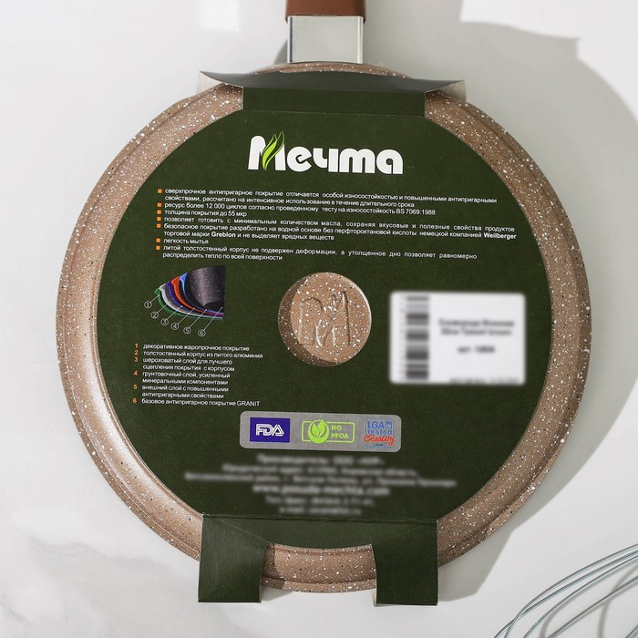 - Высокопрочное антипригарное мраморное покрытие на водной основе, усиленное сверхтвёрдыми частицами минералов.