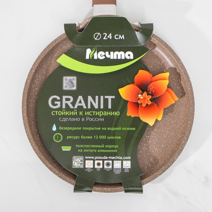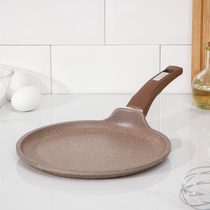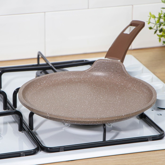 Сковорода блинная «Гранит Brown», d=24 см, пластиковая ручка, антипригарное покрытие, цвет коричневый