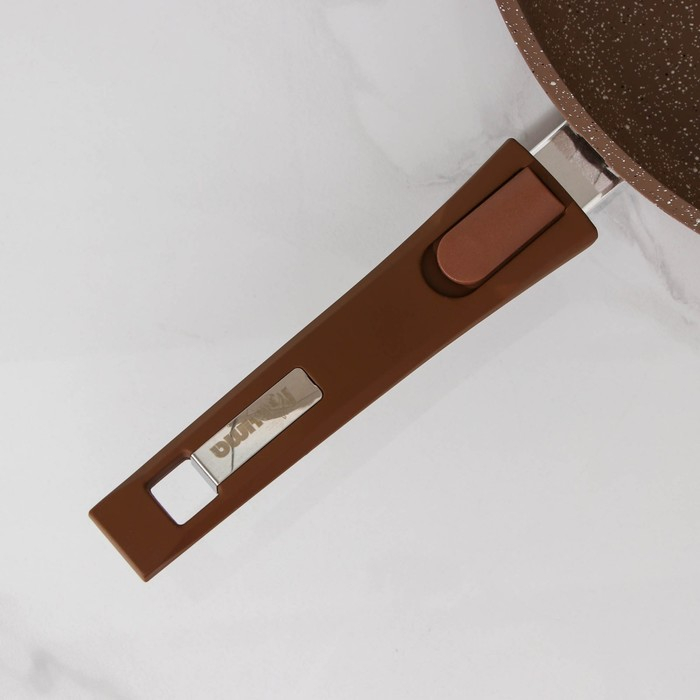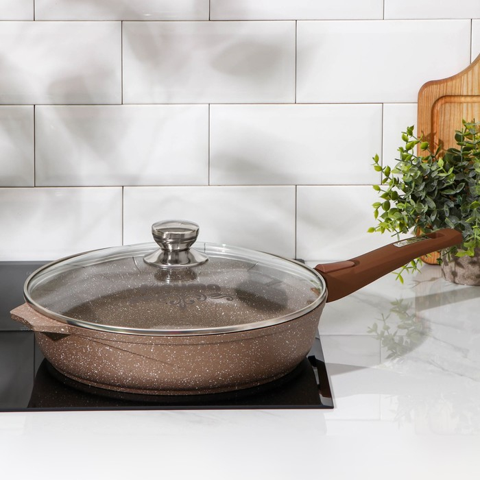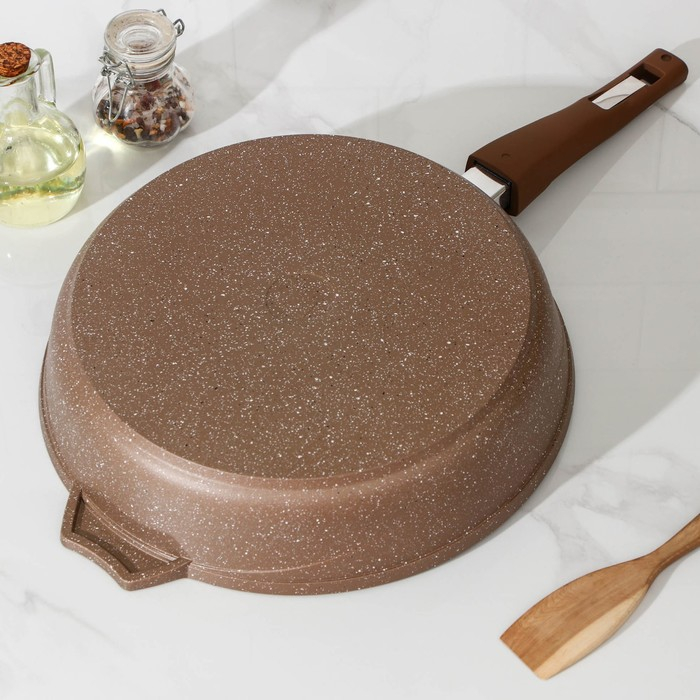 Сковорода «Гранит», d=30 см, съёмная ручка, стеклянная крышка, антипригарное покрытие, цвет коричневый