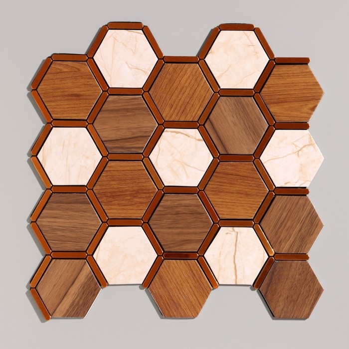 Панель самоклеящаяся 30*30см мозаика соты, коричневая