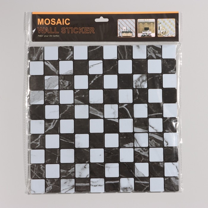 Панель самоклеящаяся 30*30см мягкая, клетка черно-белая
