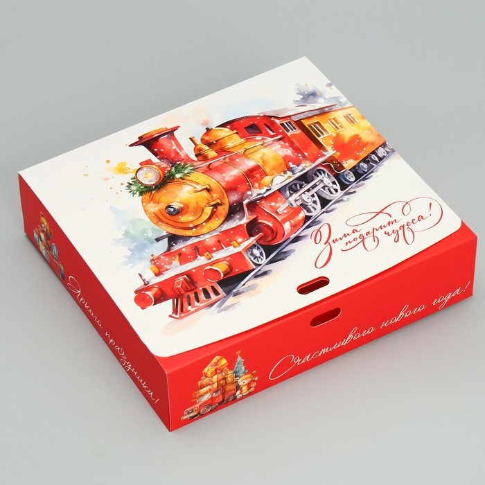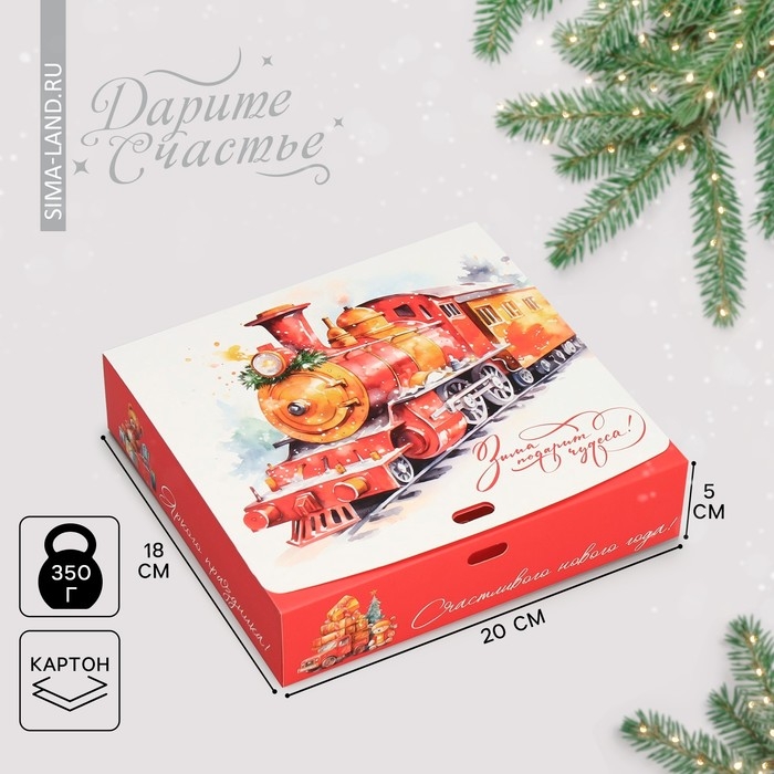 Коробка подарочная новогодняя складная «Новогодний поезд», 20 х 18 х 5 см, БЕЗ ЛЕНТЫ, Новый год