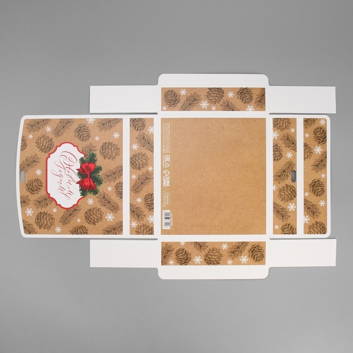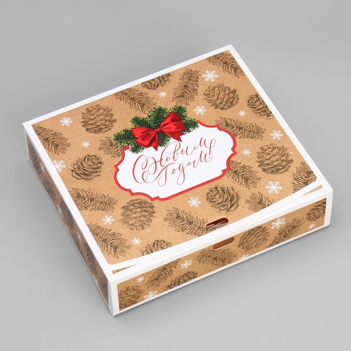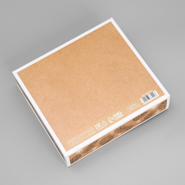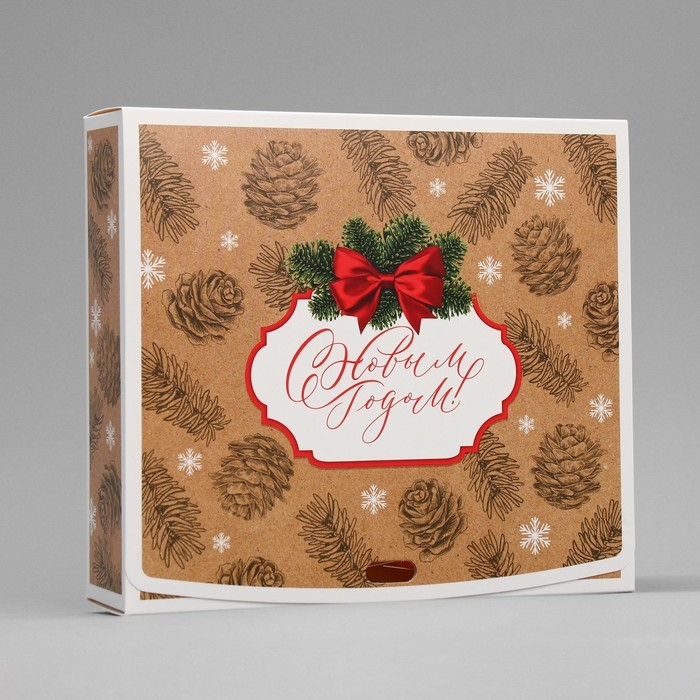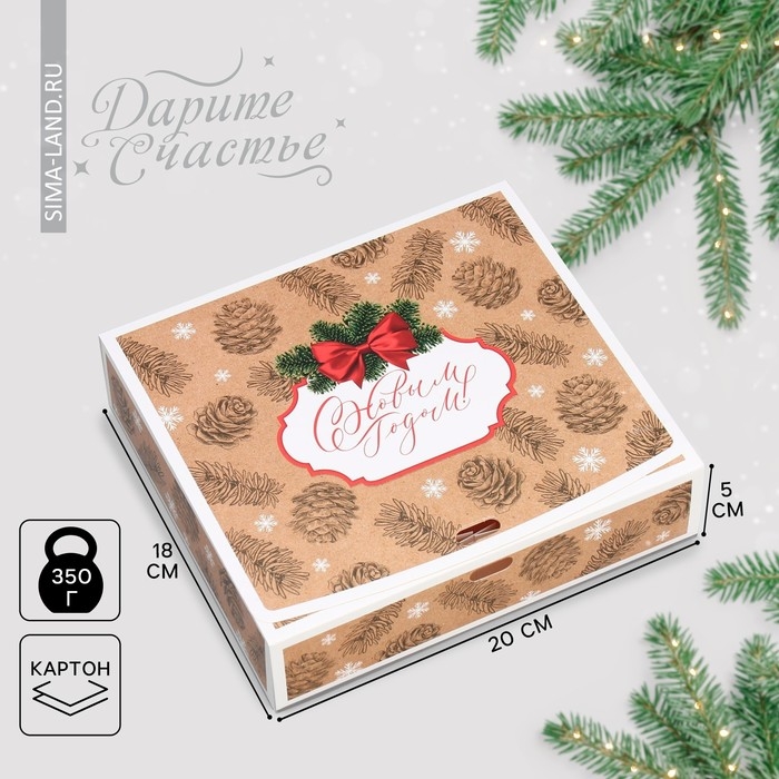 Коробка подарочная новогодняя складная «С Новым годом», крафт, 20 х 18 х 5 см, БЕЗ ЛЕНТЫ, Новый год