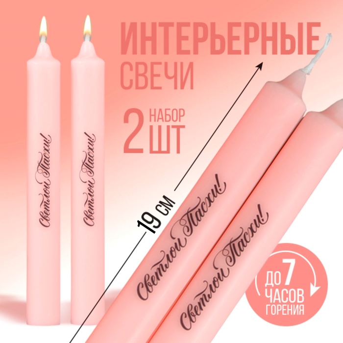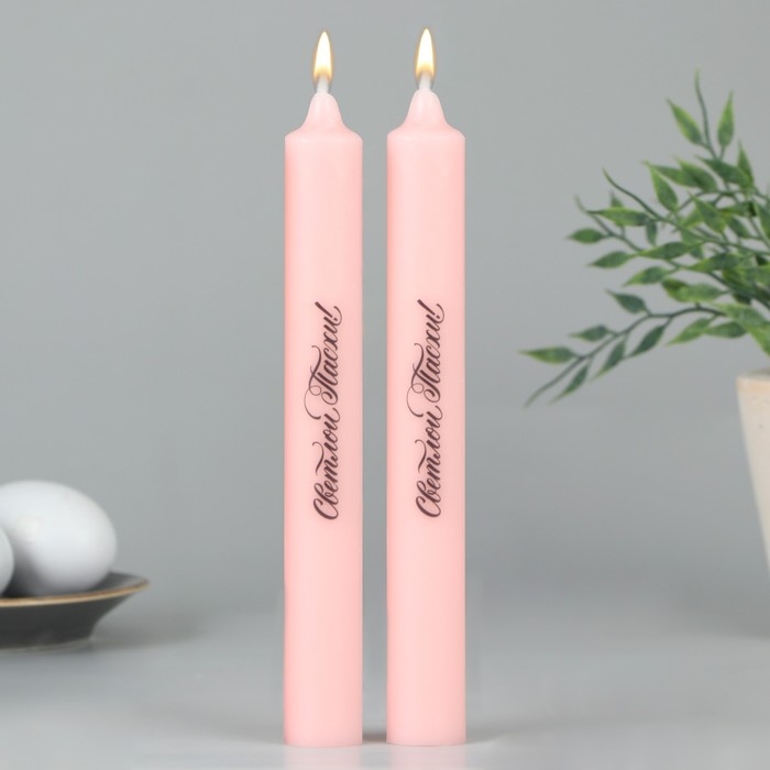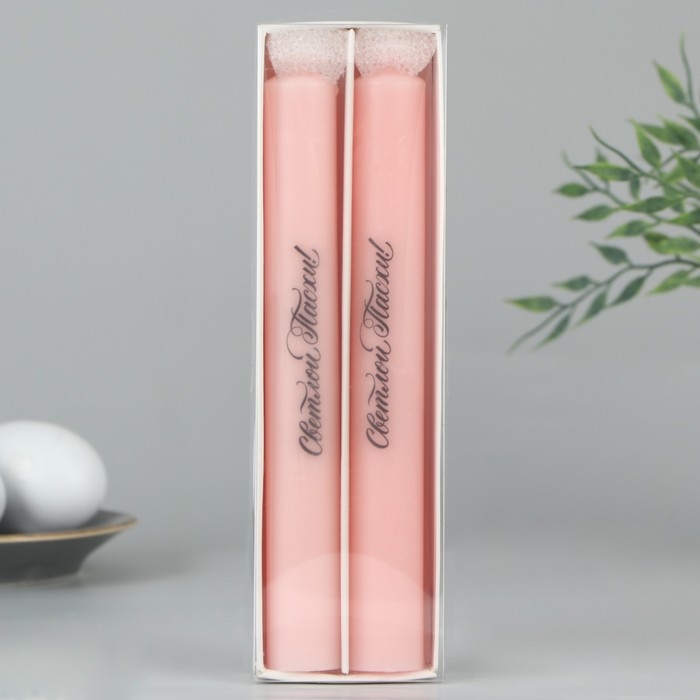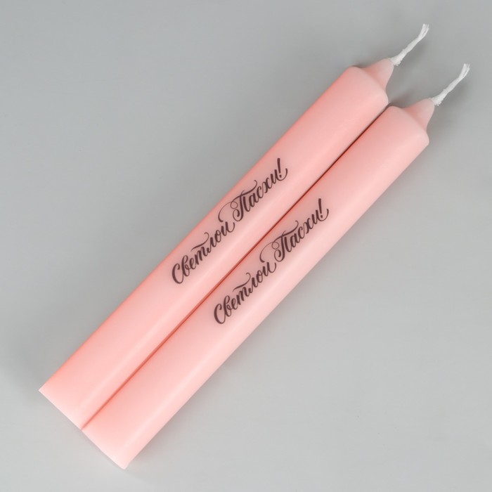 Свечи высокие с нанесением «Светлой Пасхи!», 2 шт., розовые, 19 х 2,1 см.
