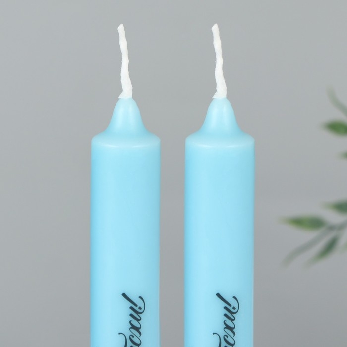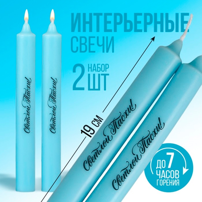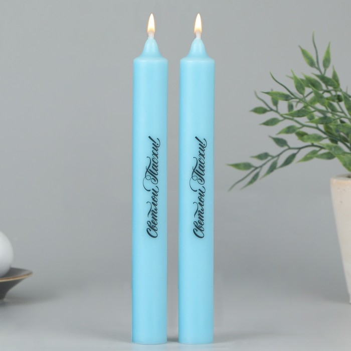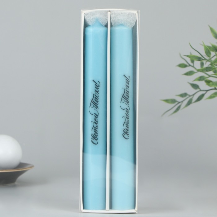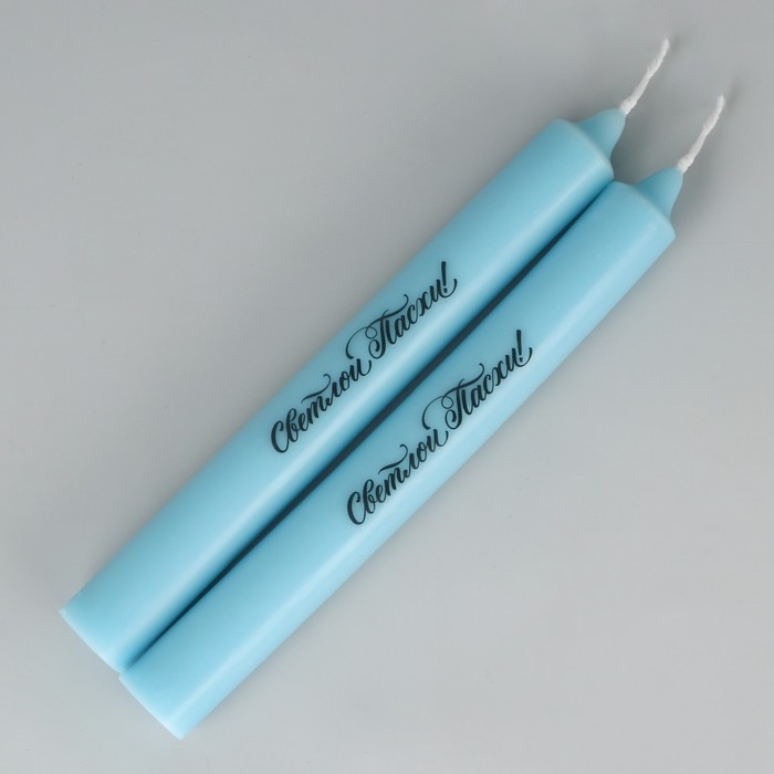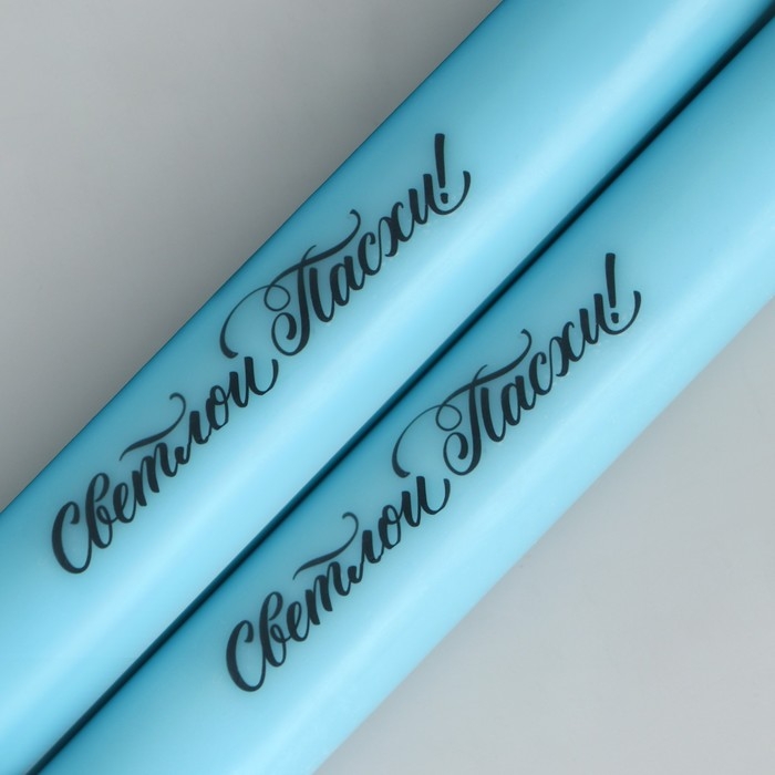 Свечи высокие с нанесением «Светлой Пасхи!», 2 шт., голубые, 19 х 2,1 см.