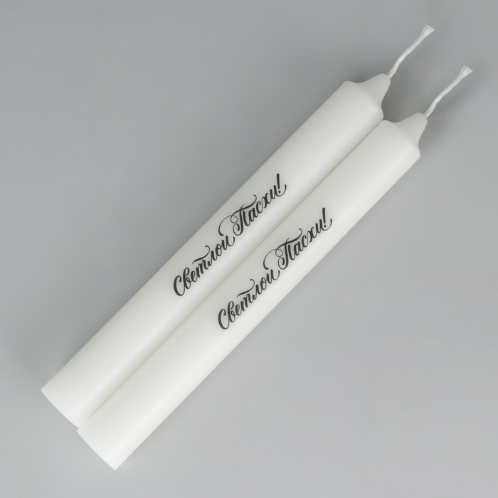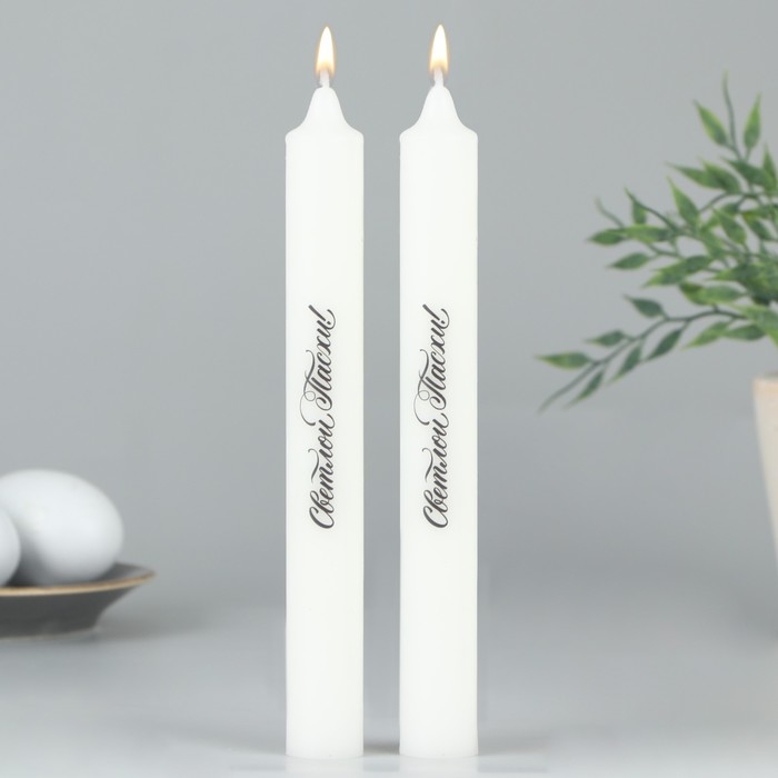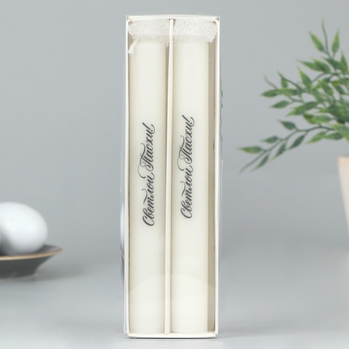 Свечи высокие с нанесением «Светлой Пасхи!», 2 шт., белые, 19 х 2,1 см.
