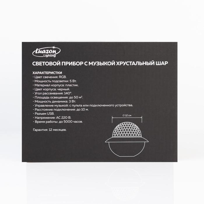 Световой прибор «Хрустальный шар» 17.5 см, динамик, свечение RGB, 220 В