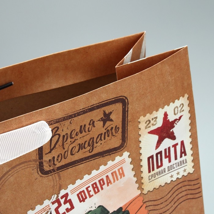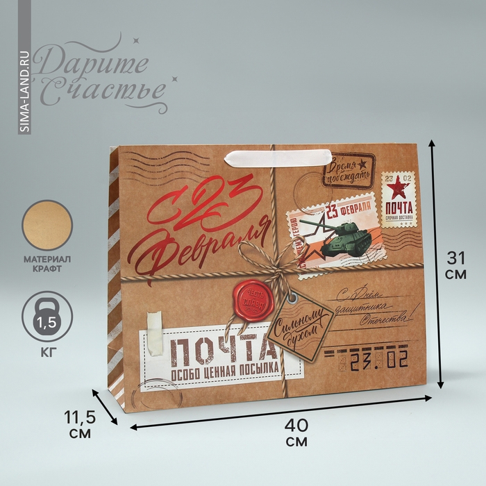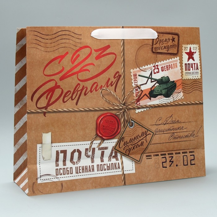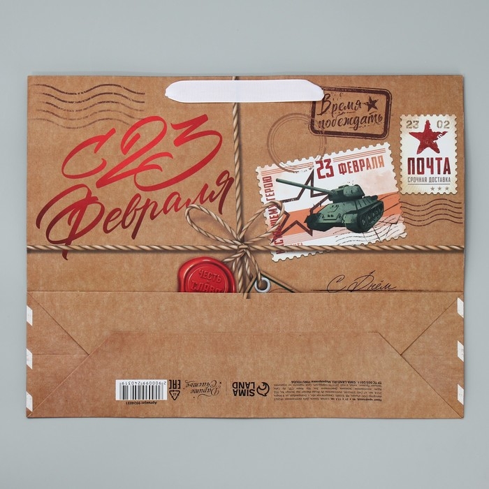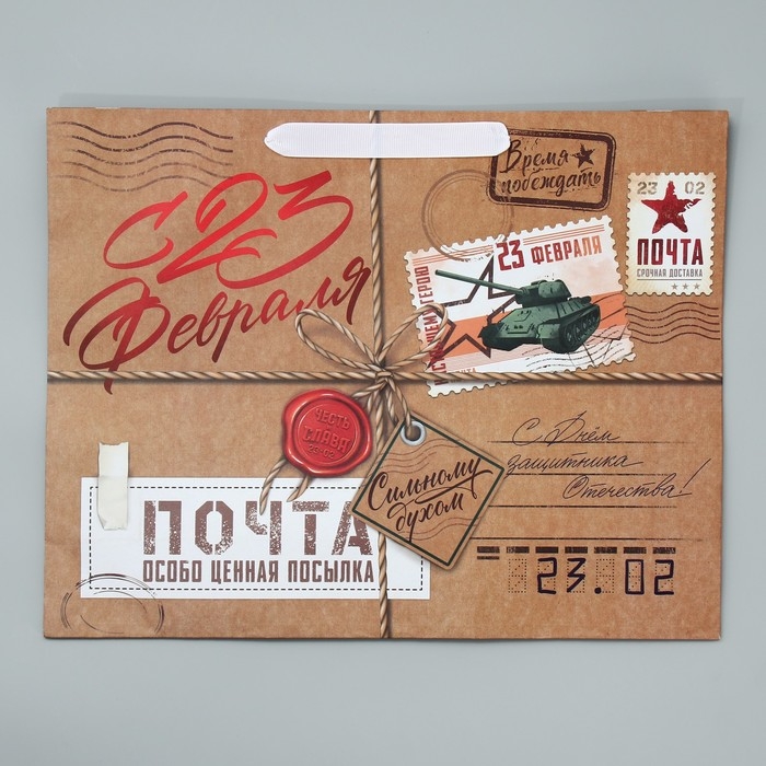 Пакет подарочный крафтовый горизонтальный, упаковка, «Почта», L 31 х 40 х 11.5 см