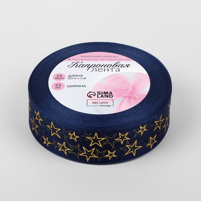 Лента капроновая с тиснением «Звёзды», 25 мм × 23 ± 1 м, цвет тёмно-синий/золотой