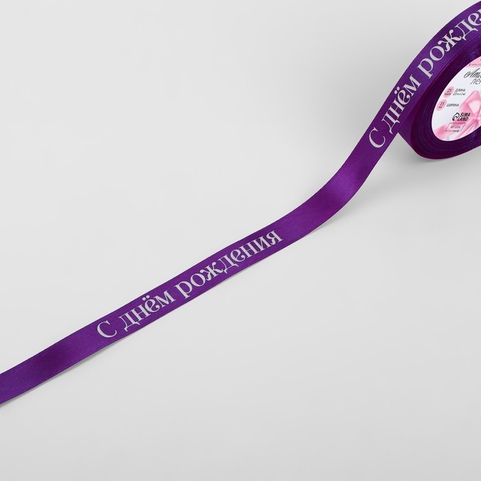 Лента атласная «С Днём рождения», 15 мм × 23 ± 1 м, цвет фиолетовый