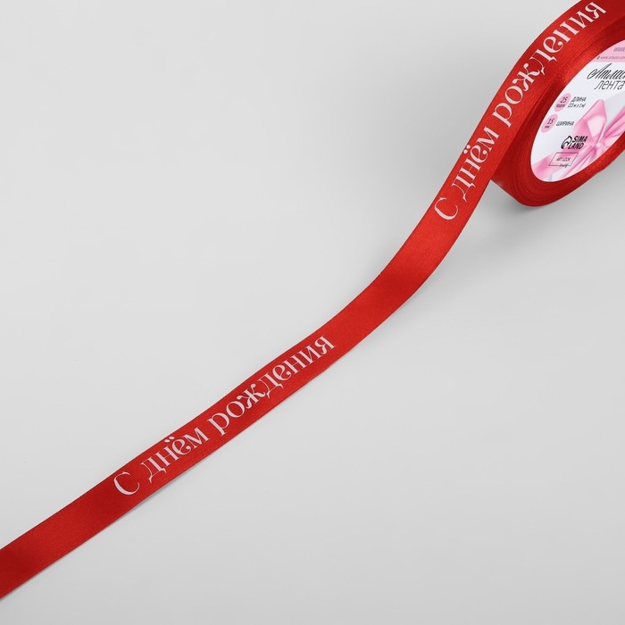 Лента атласная «С Днём рождения», 15 мм × 23 ± 1 м, цвет красный