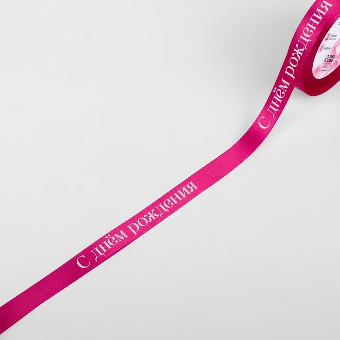 Лента атласная «С Днём рождения», 15 мм × 23 ± 1 м, цвет розовый