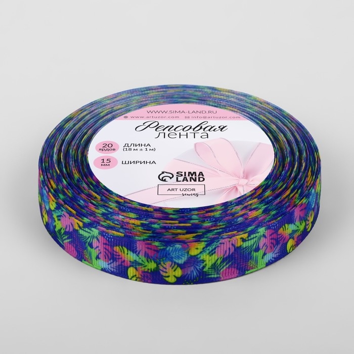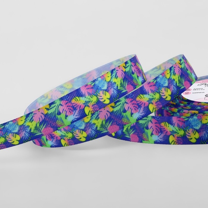 Лента репсовая «Неоновые тропики», 15 мм, 18 ± 1 м, разноцветная