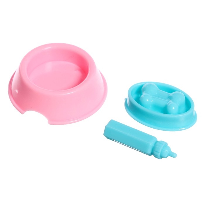 - В комплекте аксессуары для кормления питомца: миска, бутылочка. С ними игра станет интереснее и реалистичнее!