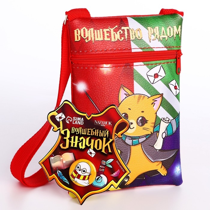 Подарочный набор детский «Волшебство рядом», сумка, значок, цвет красный