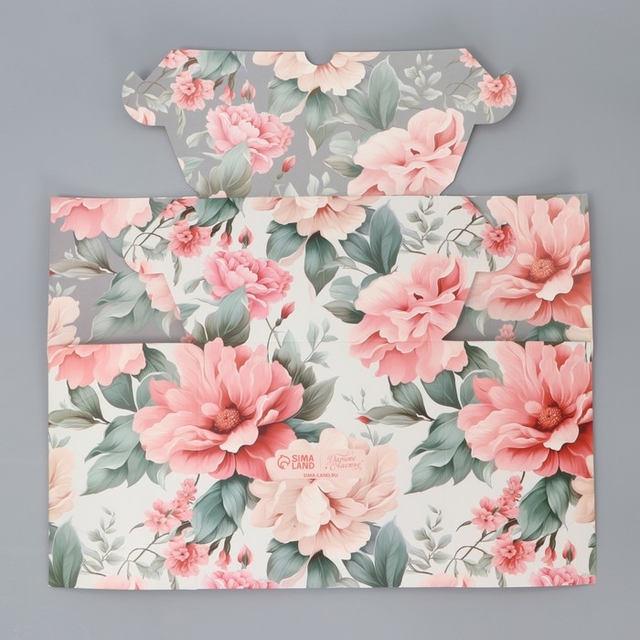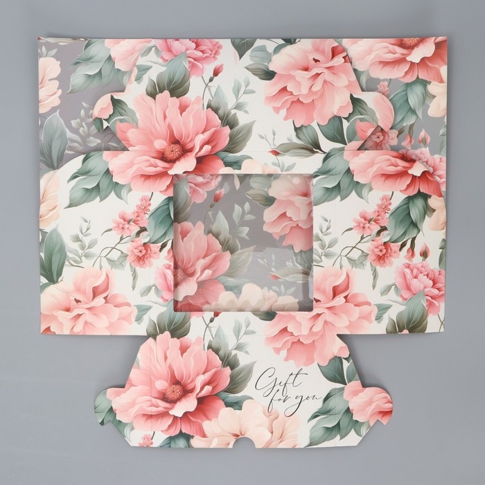 Коробка для капкейков, кондитерская упаковка двухсторонняя, 4 ячейки «Пионы» 16 х 16 х 10 см