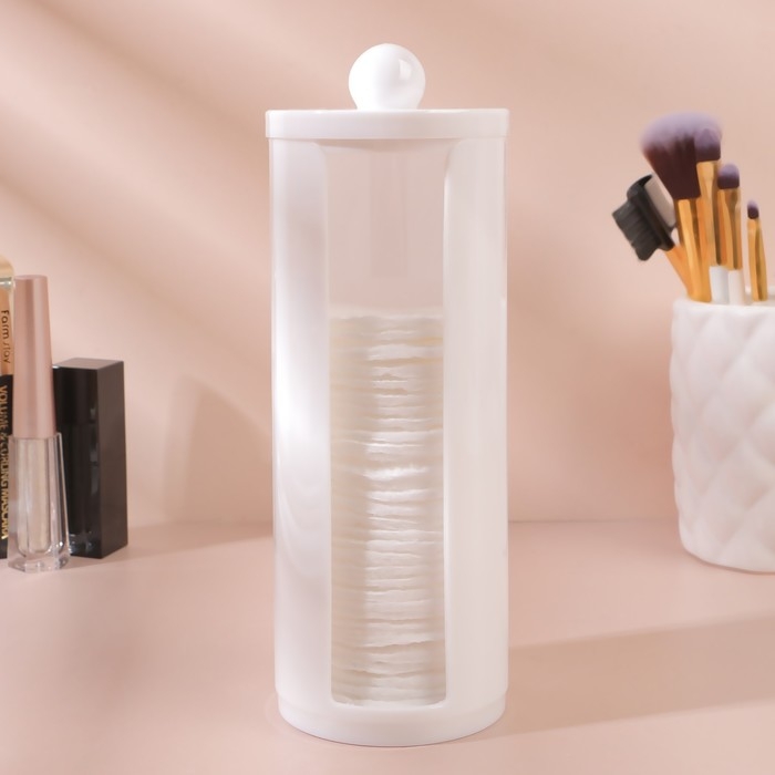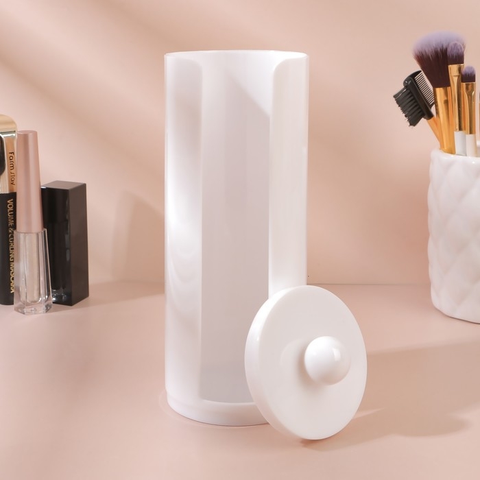 Органайзер для хранения ватных дисков, с крышкой, d = 7 × 19,5 см, цвет белый