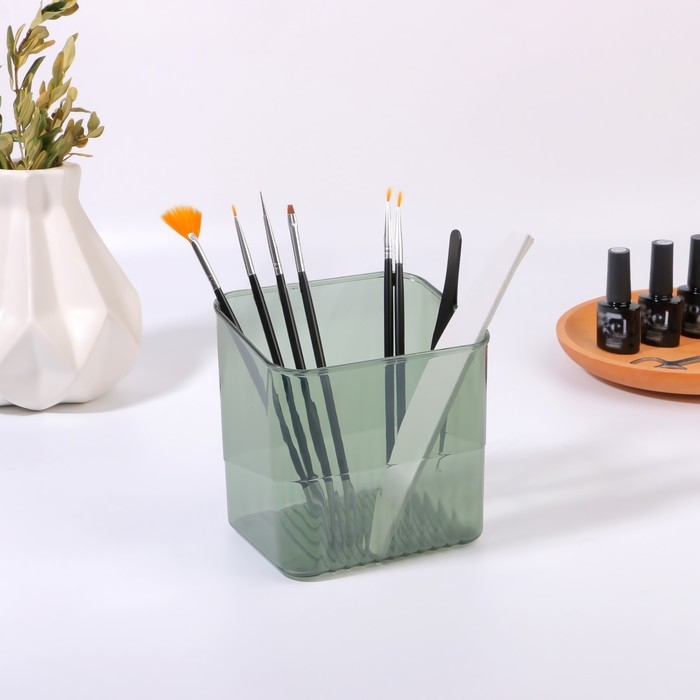 Органайзер - подставка для хранения маникюрных/косметических принадлежностей «GREEN», 11,5 × 9 × 12 см, цвет полупрозрачный/зелёный