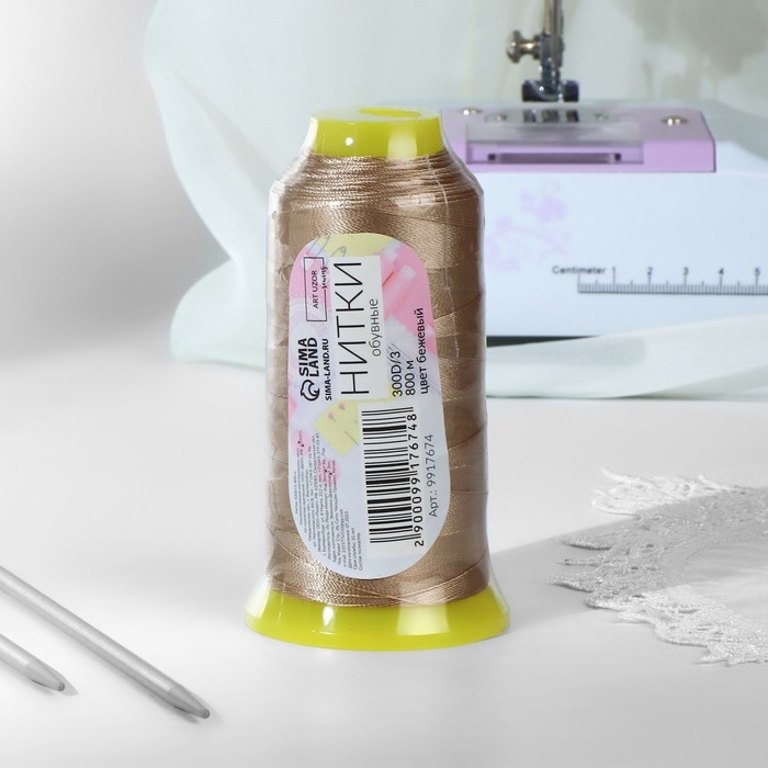 Нитки обувные, 300D/3, 800 м, цвет бежевый