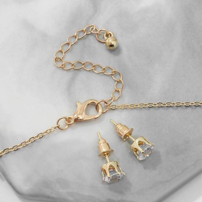 Гарнитур 2 предмета: кулон, серьги «Невесомость», сердечко, цвет белый в золоте, 45см