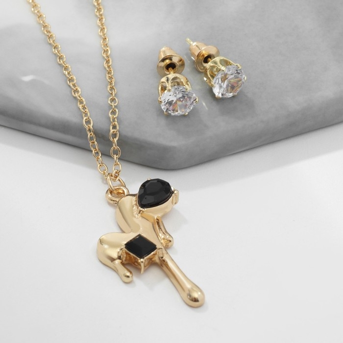 Гарнитур 2 предмета: серьги, кулон «Таяние» сердце, цвет чёрно-белый в золоте, 40 см
