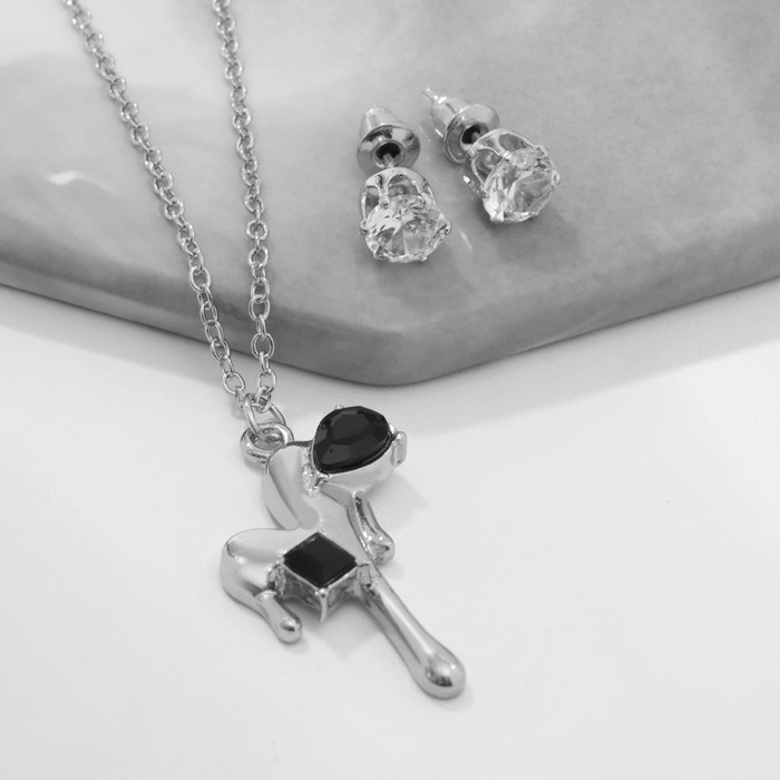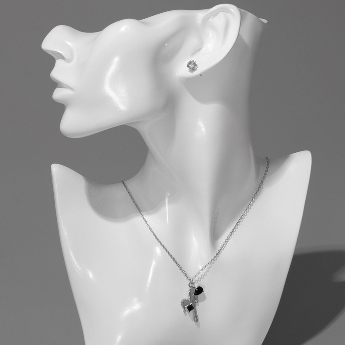 Гарнитур 2 предмета: серьги, кулон «Таяние» сердце, цвет чёрно-белый в серебре, 40 см