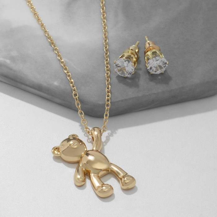 Гарнитур 2 предмета: серьги, кулон «Медведь» на лапе, цвет белый золоте, 40 см