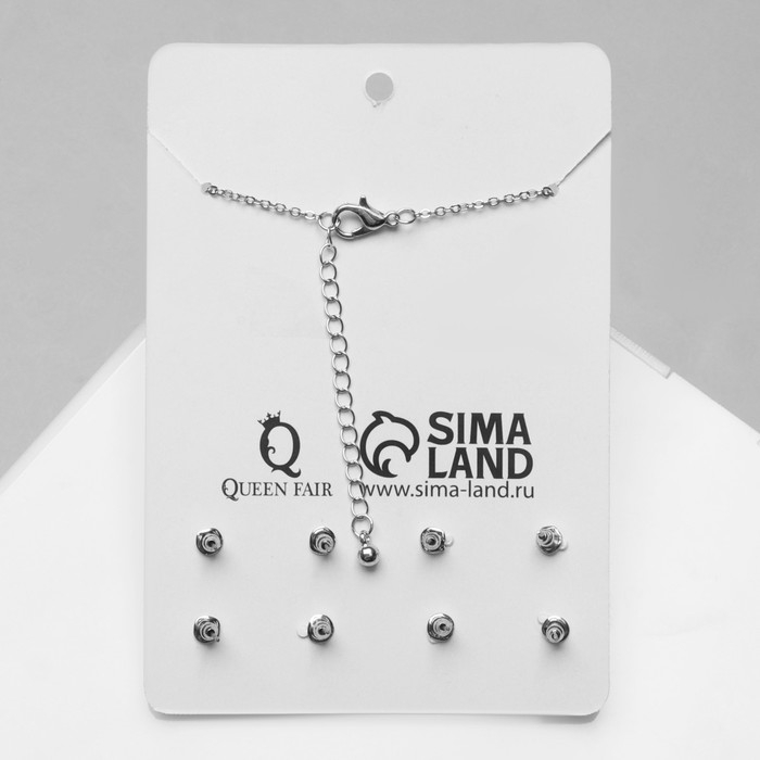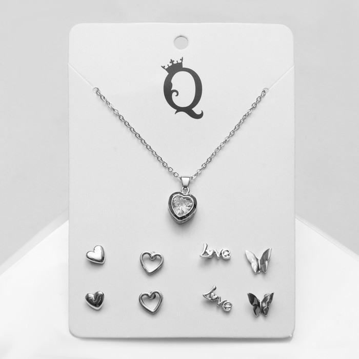 Гарнитур 5 предметов: серьги (4 пары), кулон «Минимал» сердечко, цвет серебро, 40 см