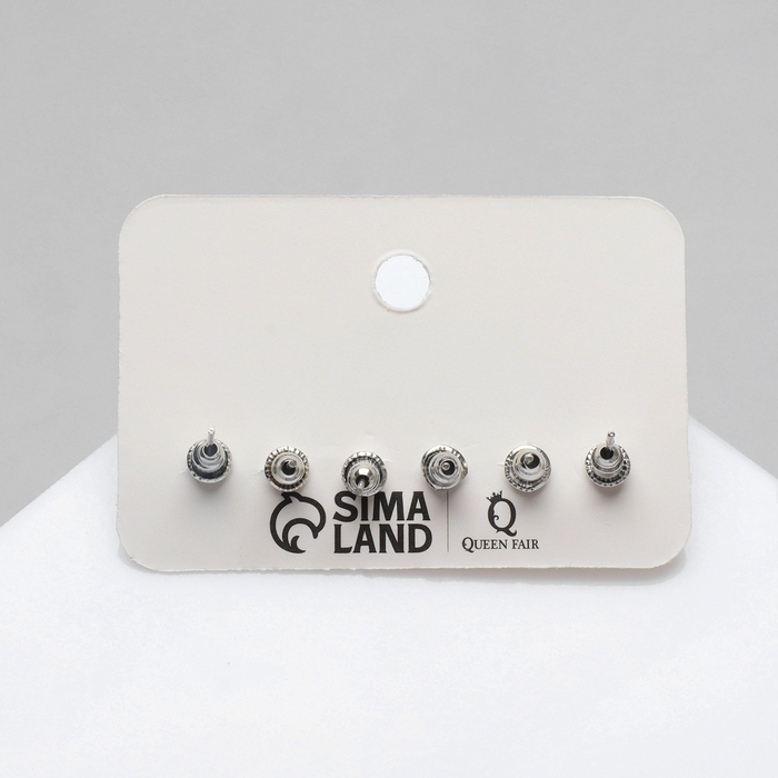Пусеты 6 пар «Жемчужные» планеты, цвет бело-синий в серебре