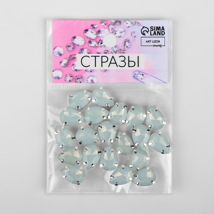 Стразы пришивные «Капля», в оправе, 10 × 14 мм, 20 шт, цвет белый опал