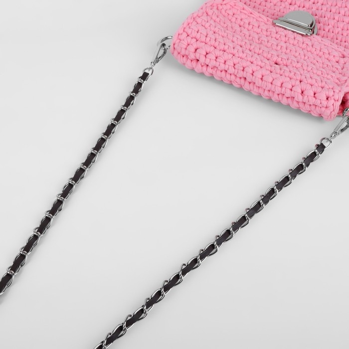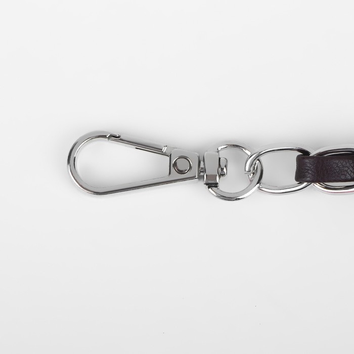 Цепочка с искусственной кожей для сумки, с карабинами, 10 × 15 мм, 118 ± 3 см, цвет серебряный/коричневый