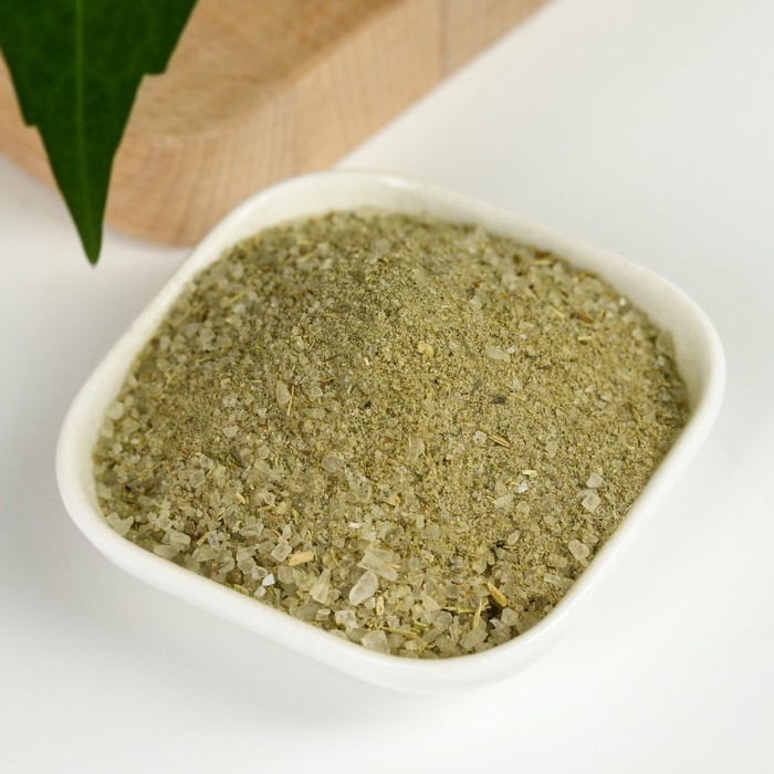 Состав: соль пищевая каменная молотая, базилик (молотый), розмарина (молотый), орегано (молотый).